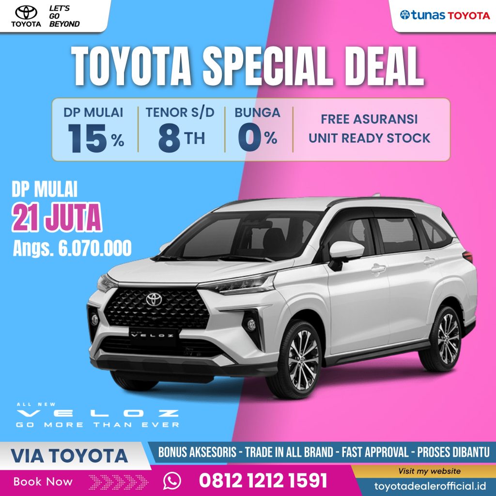 Temukan beragam Program Promo, Daftar Harga dan Paket Kredit pembelian mobil Toyota Veloz di Bulan ini dan segera miliki mobil Toyota Impian anda.